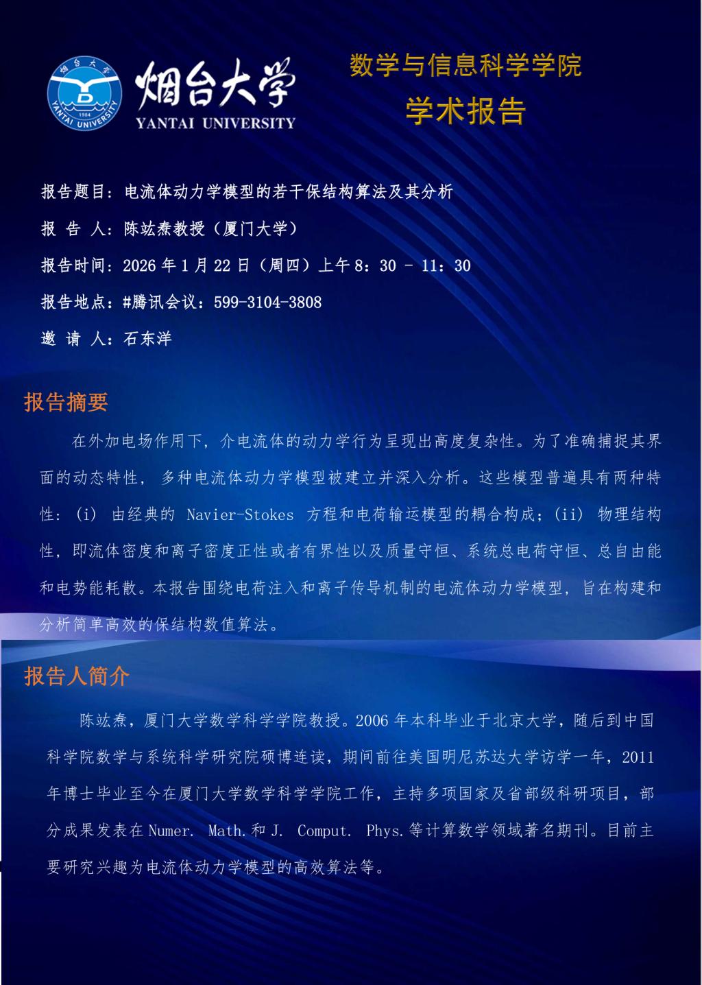 学术报告——陈竑焘 教授(厦门大学)——20260122